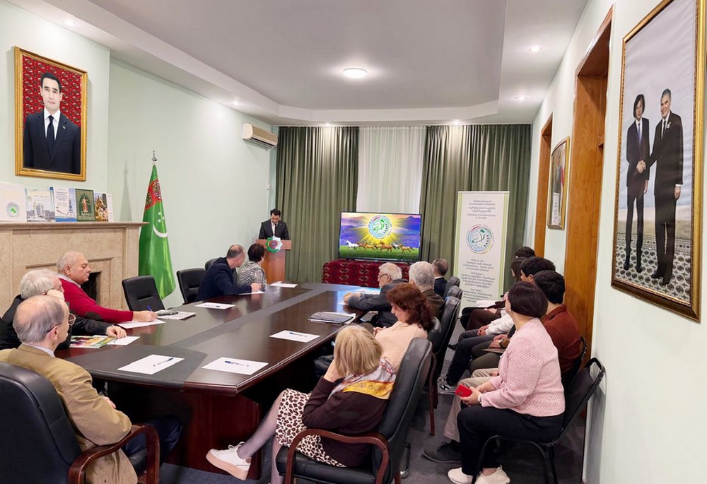"Garaşsyz, baky Bitarap Türkmenistan – bedew batly at-myradyň mekany" atly şygaryna bagyşlanan brifing, 2026-njy ýylyň 17-nji fewraly, Gruziýa
