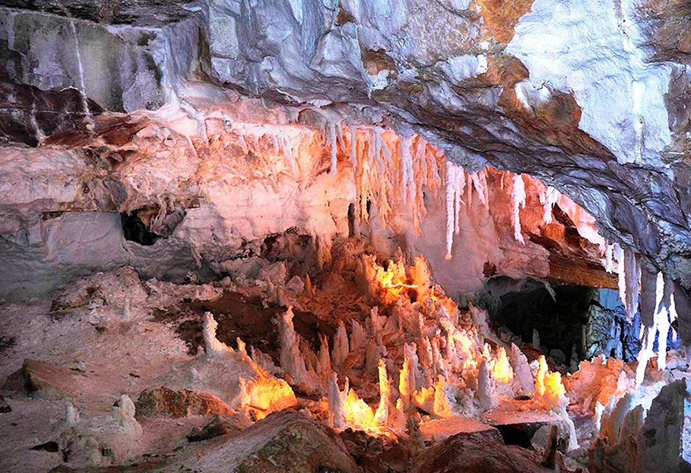 The caves feature speleothem formations of gypsum, calcite, aragonite in the form of stalactites, stalagmites, stone curtains, creating unique galleries, passages, halls and labyrinths.