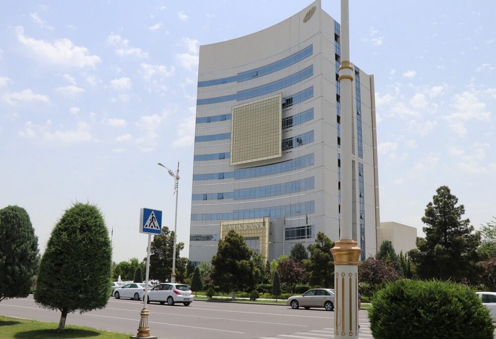 Halkbank paýdarlar täjirçilik bankynyň merkezi binasy, Atamyrat Nyýazow (2038) şaýoly, Aşgabat, Türkmenistan